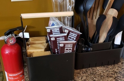 Camping without the fuss. A fully equipped kitchen, or maybe you'd rather grill, or maybe just a hot dog over a campfire. You just need to supply your groceries of choice or try the several local restaurants. All the camping favorites plus more...Fishing, boating, hiking, biking, lake swimming, relax by a campfire with smores and Yorkie's ice cream.