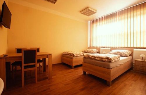 Pyramida Broumov offers accommodations in Broumov, 19 miles from Polanica Zdroj Train Station and 20 miles from Kudowa Zdrój Train Station. This property offers access to a terrace and free private parking. The accommodation provides a shared kitchen and a tour desk for guests. At the condo hotel, all units include a wardrobe and a flat-screen TV. Some accommodations include a balcony with mountain views, a fully equipped kitchen, and a private bathroom with bath. The rooms are equipped with heating facilities. Errant Rocks is 22 miles from the condo hotel, while Książ Castle is 24 miles away.