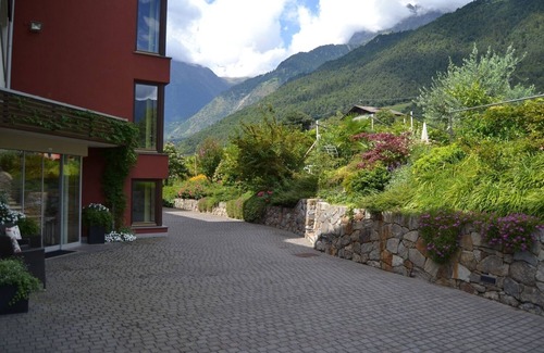 Alagundis - just 3 kilometers from the historic center of Merano. Have breakfast on your 20 sqm terrace with a panoramic view of Merano and the Burggrafenamt. Large pool in our Mediterranean garden. The Schrötter family runs the house personally.