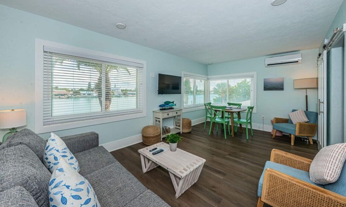 Wake up and watch the dolphins at your kitchen table!! You won’t want to leave this charming, one-of-a-kind place. The Roth Hotel is located on the intercostal water ways of Treasure Island/ Sunset beach FL. One of the largest docks on the island for viewing the boats and marine life. If you like to fish the fishing off the dock is excellent! This Beautiful one bedroom unit with an efficiency is calling your name. A short walk to the beach- aprox 150 yards.
