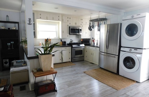There is a washer and dryer, bed linens and beach towels provided.