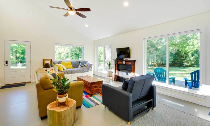 If you need inspiration for your next book or just a quiet escape from your busy life, this Charlottesville vacation rental should be your next destination! Located on a small farm, this 2-bedroom, 1.5-bath home is run completely on solar power and boasts an open concept main room with lots of natural light. Spend time on the porch or deck and revel in the sights and sounds of a small, private farm. Just 8 miles away is the University of Virginia and plenty of hip and trendy breweries to enjoy.