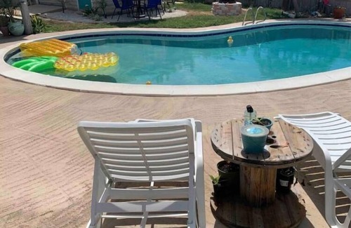 Guest access: Our Entire Home is open and available for our guests to use. We will communicate with you through Vrbo App messaging the day prior to your arrival with the door access code. We will have one locked closet and the backyard Tiki Bar is closed for now. Other than that this entire property is for your use, with front yard, large driveway, with both sides of the property gated and secured into the fully fenced private backyard with huge pool and spacious laid back oasis! If you have a trailer that you would like to park securely behind the locked gates please notify us prior to your stay so that we can arrange things properly for your stay. There is a ring camera at the front door only. There is No Smoking and No Pets allowed for this home. Check In is 3pm and Check Out is 11am. Although at times we may be able to make allowances if needed so please message us.