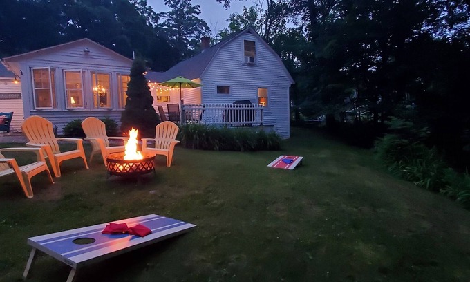 Bring the dogs and kids to the lakes! Walk to downtown Wolfeboro and the beach. Quaint Cottage on High is the perfect home for your next family vacation at the Lakes. Located at the end of a dead-end street of a few houses, the cottage is on four acres surrounded by woods. Just down the street is the Mast Landing public boat launch on Lake Wentworth. Winnipesaukee is minutes away. Play fetch with your pup or just relax by the fire pit with your favorite refreshment while enjoying the moment. A charming, well stocked home with all the creature comforts you want including Wi-Fi. Outdoor dining on the deck with gas grill, warm & cozy sunroom, electric fireplace for year-round ambiance, kitchen essentials, towels & linens, comfortable beds, and 3 TV's. Great yard for the kids and dog to play. Cornhole, bocci, badminton, marshmallow roasting sticks, and camp firewood are on site to assist with having quality family time together making memories.