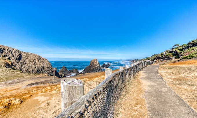 This endearing home embodies Yachats' affectionate nickname, the 'Gem of the Oregon Coast.' Explore the beautiful, uncrowded beach only 75 yards from the front door, or journey three and a half miles south to downtown where you'll find restaurants, the Green Salmon Coffee House and a handful of galleries to browse. Further south is the Cape Perpetua Scenic Area where you can stare out over an 800-foot viewpoint at rugged coastline. Newport is about 20 miles north with all the assets of a larger city and the renowned Oregon Coast Aquarium!