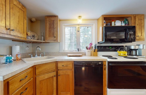 With two bedrooms, a loft, and one bathroom, this spacious home can comfortably sleep as many as six people during your Vermont getaway. The main floor features one queen bedroom and one bathroom with a washer/dryer, while the second floor has one bedroom with two twin beds and a loft with a twin trundle.