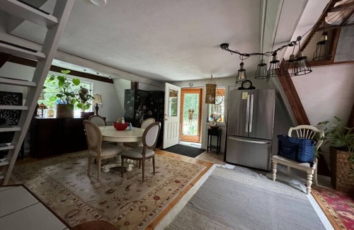 Take it easy at this unique and tranquil getaway. Quechee is a charming town with so much to explore. This quaint A-Frame offers a peaceful, fun, beautiful, charming, most importantly private and relaxing space. Perfect place to come and center your spirit. Please feel free to reach out with questions and or recommendations! This property is perfectly located for every outdoor activity and close to town amenities.