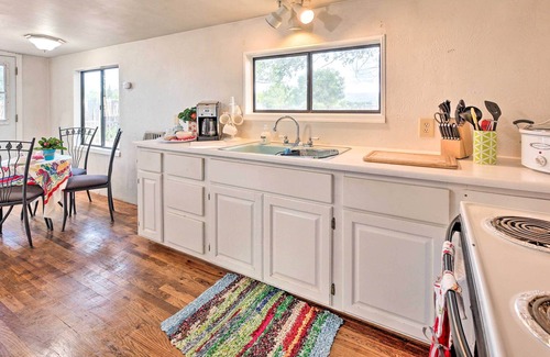 Centrally located near ample hiking trails, wildlife areas, and lakes for fishing, this vacation rental provides all the essentials needed to unplug and enjoy a weekend retreat! This pet-friendly 1-bedroom, 1-bathroom home sits on just under an acre of private land and offers a well-equipped kitchen and a private patio with mountain views. Visit Arizona’s oldest movie theatre, El Rio Movie Theatre, or grab your hiking boots and head to the White Mountains of Arizona. Your next adventure awaits!