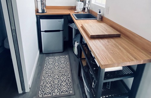 Whether you are looking for a quiet getaway or a unique experience being on a homestead, this is the place for you!!! This is a brand new rental that was built and designed for the sole purpose of providing space for travelers. During your stay, you will have access to a fenced in tiny home with privacy to enjoy the sunsets and your morning coffee. There are two lofts, one with a queen bed and the other with a twin bed. There is a bathroom and a small kitchen with mini fridge, toaster oven, and table top 2 burner stove. There is a television and blue ray for you to watch movies or you can use your personal hotspot to access Roku. You are welcome to walk around the rest of the property and see the farm animals. The sunsets and star-filled skies are unreal and we look forward to hosting you.