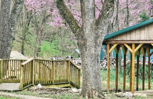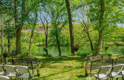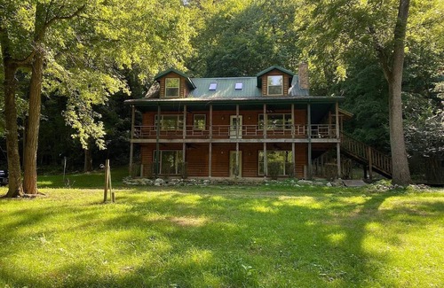 There are 20 acres of the property. There is a couple cleared acres to use for ourdoor activities and events, A large deck near the river for relaxing, Ceremonies, photos pic-nics...A covered pavilion may be used for cooking outside, Small birthday parties...