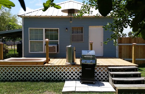 Updated traditional "batch" type ( New Zealand Kiwi jargon) beach cottage. All electric with window AC & 1 heat window unit & smaller unit in front room with remote. Stackable LG washing machine & drier combination in laundry area. Laundry soap is provided & the washer/dryer combo is easy to use. All done by us as a work of love in the tradition of the Heritage District batches which are fast disappearing. Its quaint but cute, its old but clean & rebuilt pirate tough & strong. Some cracks here & there still remain but ongoing improvements make the cabin better & better each year. Its proven Hurricane Harvey tough. We love providing this rustic inexpensive getaway experience for our guests.