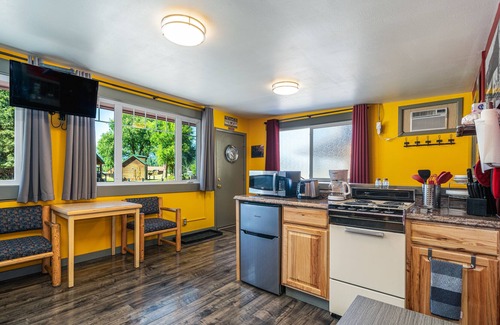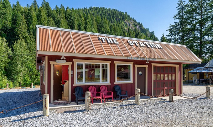 A lot of creativity and fun went into designing "The Station". Guests are charmed by the details that bring back to life, the yesterdays. All the comforts of today are at your fingertips in this delightful lodging. Once a Texaco Station, which also boasted Annie New's original cafe. Her bar stools still sit at the kitchen counter in this lodging, along with the original billboard menus. Old preserved photos adorn the walls, bringing solid vision to days gone by. The Station has two bunk arrangements, one in a separate bedroom, which will easily accommodated seven guests. There is a full kitchen. Across the street is a barbecue and horseshoe pit shared with the Columbia Cottage guests.