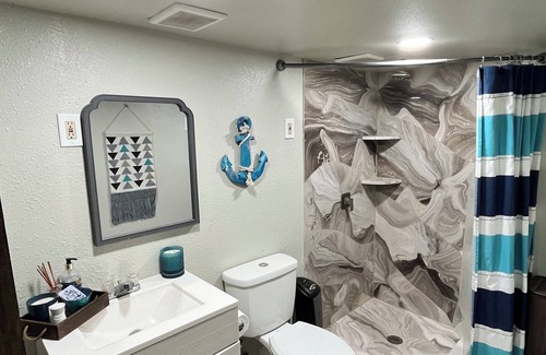 The "Sylvia" cabin is an ideal location for those who want to enjoy the camping experience while having the comforts of home. Dual mini-split HVACs, ensure the temperature is always perfect regardless of the season, and the tankless water heater guarantees that you never run out of hot water. Relax in front of the TV enclosed in one of our custom stone fireplaces - don't blame us if you fall asleep with the remote in hand!
