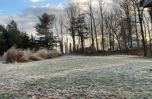 The house sits on a quiet country road on a 1.5 acre yard. A small seasonal pond in the backyard provides life to lots of native bird species and hosts a symphony of spring peepers and crickets that provide a stunning audio backdrop.