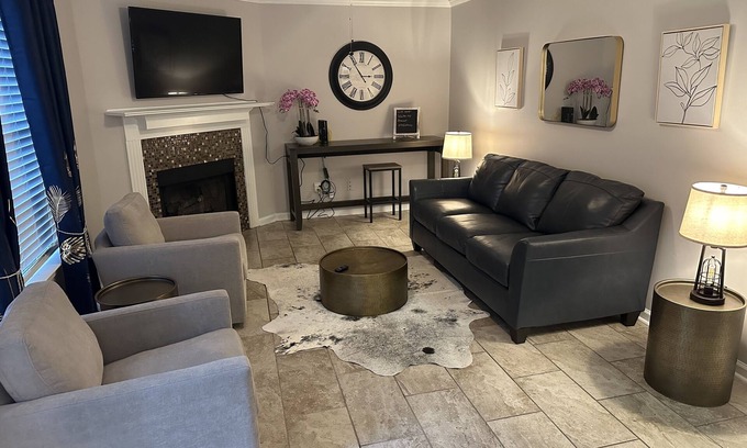 Enjoy a stylish experience at this centrally located place. Fresh paint and furnished with style. Kitchen has nice stainless appliances. 3 bedrooms each have a queen bed with memory foam mattresses and luxury linens. Washer and dryer in the unit. 2 bathrooms one down and the other up. Primary bedroom down and two are upstairs. This home is close to I-55, Tanger Outlet Mall, hospitals, Memphis International Airport and Graceland.