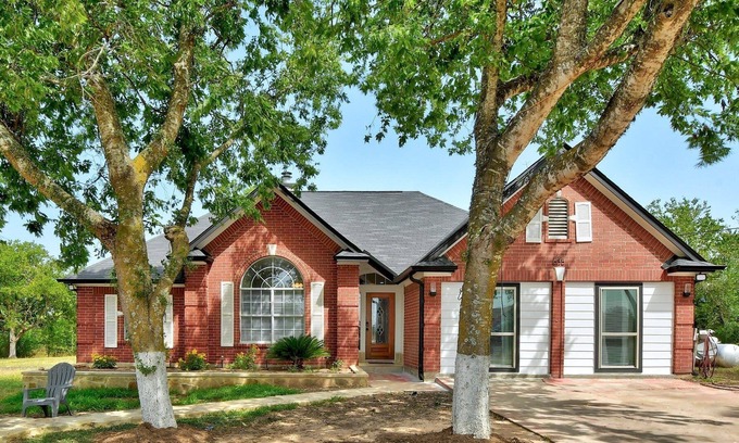 This home offers you plenty of space for the entire family with 5 bedrooms. The house sits on 3+ acres and has a fire pit outside. This home is about 13 miles to COTA and 15 miles to San Marcos river.