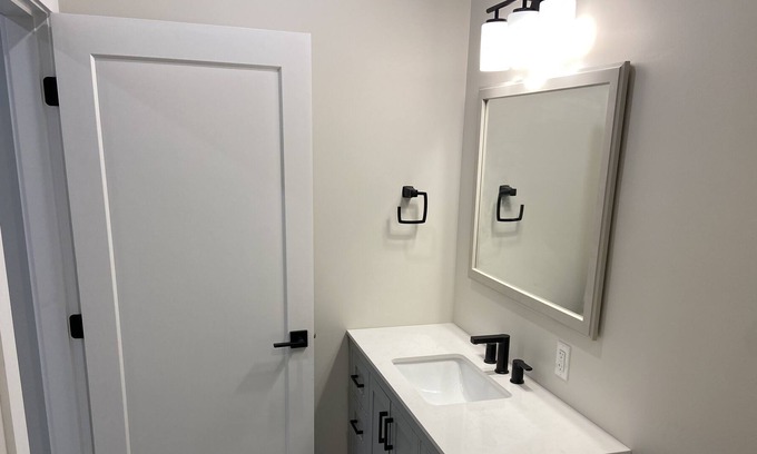 Large space in bottom floor of brand new home. Open concept living room with large kitchen. Shared full sized laundry with storage. Free parking and private entrance. Quiet neighborhood. No smoking please.