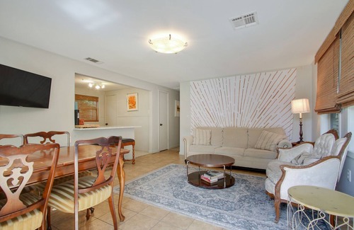 There are new countertops and appliances in the kitchen, a private washer and dryer, and central AC/heat. There is a TV in the living room and master bedroom, both with Netflix. 2 off street parking spaces are available for small vehicles. A big vehicle will take up both spaces, but there is usually plenty of street parking available as well. The lush front yard is securely fenced in and set far back from the street.