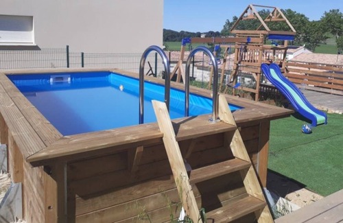 Yes, this Roujan house has a swimming pool. Check the Facility Overview section for details about the pool and other available facilities.