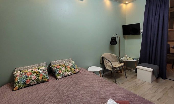 The apartment offers free internet, heating, TV and air conditioning.