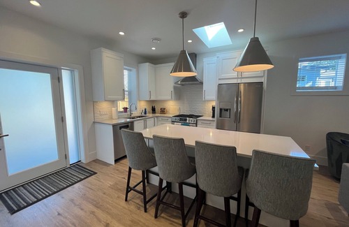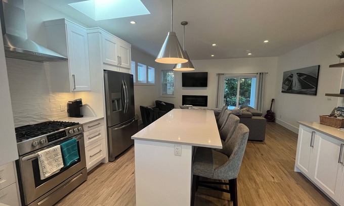 Cadboro Bay Coastal Cottage is a lovely brand new private cozy space, fully self contained. It offers one King size bed and ensuite bathroom and one queen bedroom with and additional bathroom. There is a sofa sleeper in the common living room area. Equipped with a full kitchen including gas stove and a private covered patio with Gas BBQ, Laundry room with new washer and dryer.