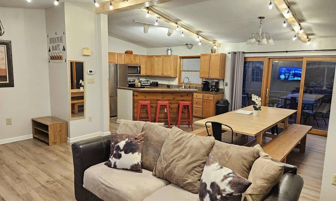 After a long day of adventure - you can relax in the hot tub (5-7pp), warm up next to a real wood burning fireplace, play pool (8 feet slate) and various board games, watch a movie on a 51' flat screen ROCKU TV in the family room or smart TV on the main floor. Sit on the deck and relax by watching and listening various birds and wildlife (lots of Deer) or just enjoy some quite time.