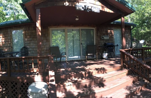 Our little cabin is perfect for families. Secluded in the woods only a mile from a Dollar General and convince store. The master bedroom features a queen bed with ample closet space. The other bedroom has twin bunk beds with a ladder to the top bunk that kids love. The futon in the living room is new, and folds out to a comfy full sized bed. The master bedroom has a DVD player and the living room television has DirectTV with a DVD player.