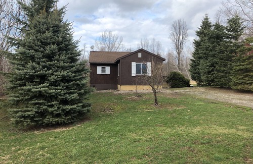 Modern cabin with all the amenitities. Can sleep 6.3 bedrooms ,bath ,kitchen ,living room. Deck ,barbecue grill ,picnic table. Located near many wineries ,golf courses beaches ,hiking trails and excellent fishing (with my charter boat and others in area also) for salmon and trout, Walleyes ,bass and pike. Famous Chimney Bulffs 3 miles away .cabin is located 700 ft off from main road surrounded by woods and field with property going down to Sodus Bring your own towels and linens. Sheets etc (Twin beds)and one full size. 2 nite minimum stay. Long term rental available