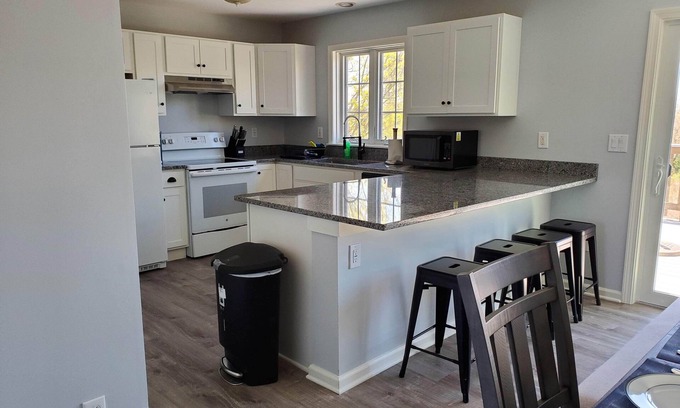 This is a great house in a central location! You are 1/2 mile of driving distance to several area beaches and local favorite restaurants and only a few miles to local shopping. You have 2 decks (top deck great for viewing the beautiful sunsets), large yard, plenty of parking, gas grill, central air, laundry in house, outdoor shower and plenty of relaxing space. This home has a great set up if you wanted to share with 2 families (3 bedrooms and a full bath on each floor). Last spring this home received a complete makeover on the inside! BRAND NEW Beds, Mattresses, Furniture, Dishes, new flooring, Vanities and Granite Counters. Some outside yard work will be added this Spring. If you have any questions at all please don't hesitate to contact me. I am happy to answer any questions you may have. We are very excited about it!!