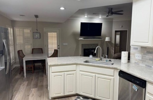 Great 2 bedroom 2 bath home. House is completly updated. Den features gas logs in the fireplace. Also has a garage for private secure parking. On street and driveway parking is not permitted. Private covered porch. Neighborhood has walking trails throughout. Majority of the neighborhood home owners are retirees which makes for a very quiet area. Close to the interstate, shopping, restaurants, and local Universities. Sleeps 4. WIFI available. Gated community. Perfect for the guest who are coming into town to visit family, vacation in downtown Montgomery or go to a college graduation.