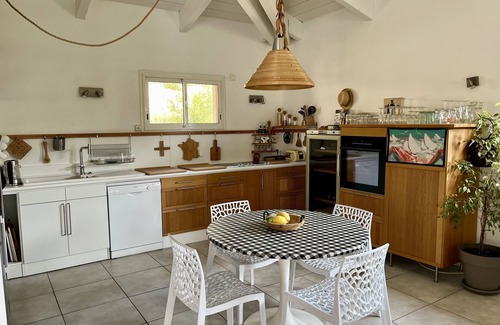 This villa reveals a 90m² L-shaped living room whose fitted kitchen punctuates the space with its unique lines.