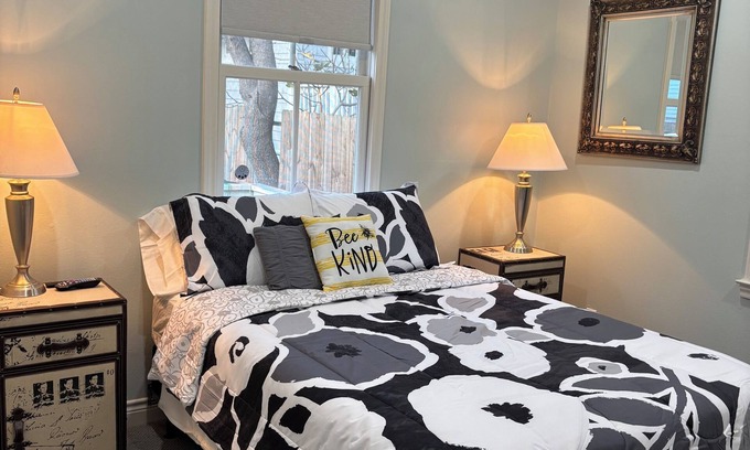 Perfectly located in between the beach and downtown in the East End Historic District of Galveston. A short stroll to many popular restaurants and cafes! Enjoy the lovely gardens and butterflies of Darragh Park across the street from the property. Cottage offers two bedrooms, two bathrooms, a sleeper sofa in the living room and a fully stocked kitchen. Street parking as well as off street parking available. Compact cars and small SUVs will fit in the driveway. Full sized vehicles are asked to park in the street at no charge. Book your stay and come enjoy Galveston’s charming and beautiful historic east end.