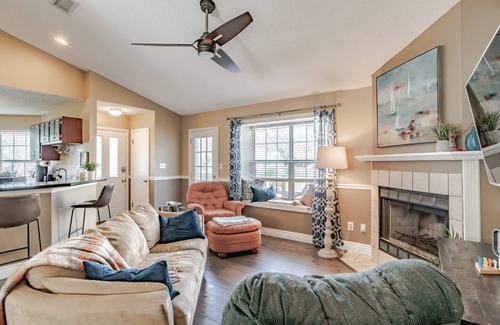 This open concept home is cozy and comfortable. The fully equipped kitchen is perfect for a quick snack or family dinner. Step outside on to the deck and grill dinner or enjoy the cool morning breeze with a cup of coffee. Two spacious bedrooms and 2 full bathrooms. The master bedroom has a private bath with garden tub and shower. A washer and dryer are located in the garage for the guests to use.