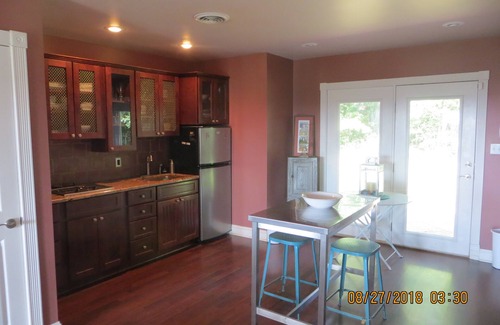 Charming farm cottage on a hill overlooking West Fork Valley, in rural Carlisle Co., close to Paducah, but in a peaceful, quiet setting. Our farm has been in our family for 100 years, & we love making it available for guests from around the world to share our love of the land and the natural beauty of West KY. One large, open room features living area, sleeping area, & kitchen. One private bedroom, one bath with inviting shower. Woods, lake, creek, wildlife, & only 30 min from Paducah.