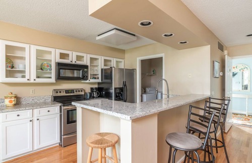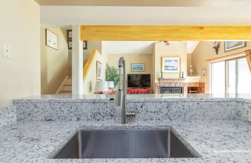 Enjoy cooking in the fully-equipped and newly remodeled kitchen, including both large and small appliances for your convenience. Dine as a group at the four-person table with additional seating found at the counter. A gas grill is also provided for your convenience.