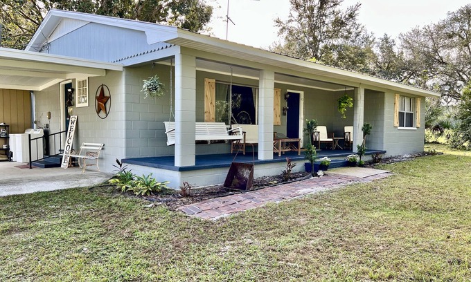 Come enjoy a peaceful stay in the woods at "Quet’s place" a serene gravel road through historic Richloam will lead you right up to your getaway. Relax and take a swing on the front porch and watch the wild turkeys pass by or bring the whole family for a thrilling vacation. "Quet’s place" is only one hour from all major Florida theme parks. Weather you are looking to get away from it all and relax in the country or have the thrill of a lifetime with your family, this is the place to be!
