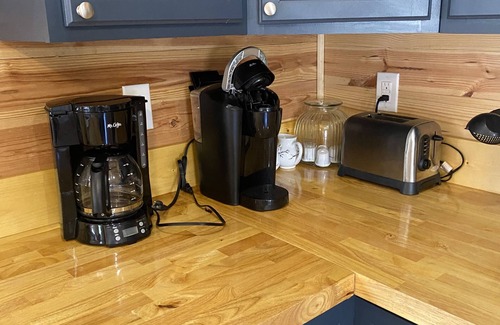 Beautiful 2 bedroom cottage with wood interior throughout. Roomy living room area has vaulted ceiling’s and fully stocked spacious kitchen with butcher block countertops. There is a separate eating area. Each bedroom has a queen bed and adjoining full bathroom.