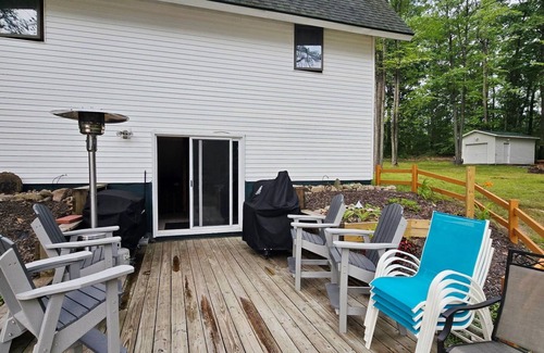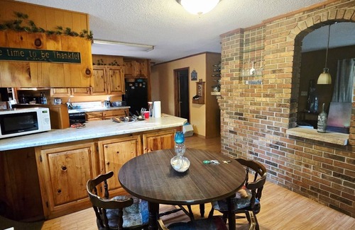 There's plenty of space for all guests. The 2 bathrooms are equipped with showers, towels, and hair dryers for your convenience. Downstairs leads to a walk out basement where you'll find a blackstone and pit boss grills! Also, a fabulous bar and mini fridge along with a 75 inch tv for all your entertaining! You're sure to make fantastic memories with a stay at our place.