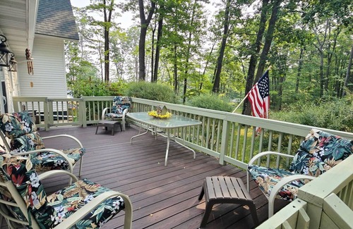With 2100 sq. Ft and 4 levels, you'll be sure to have enough space to enjoy! There's 1 king bed on the main bedroom floor, 2 bedrooms on the 3rd floor featuring 1 queen, and across the hall a queen and a twin in the bedroom. Up in the loft, there's a queen bed and 2 twin beds with peek a boo views of the lake.