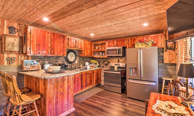 Experience magic right before your eyes with a stay at this secluded 3-bed, 1-bath home located in Calico Rock, the only town in America boasting a ghost town within city limits! Nicknamed ‘Cold Creek Manor,’ this vacation rental features restored antiques and local artifacts, meriting it an antiquarian delight. Spend your day fishing, hiking, and exploring the historic Peppersauce Ghost Town just steps away. Return home, balanced with modern conveniences, like a patio, free WiFi, and Smart TVs!