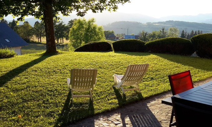 My house welcomes you in a rural and relaxing environment: fields as far as the eye can see and clear view on the surrounding mountains.
