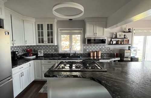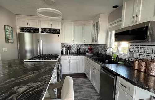 Summer vacation home available for off-season rental. This 4-bedroom home was designed with ultimate relaxation in mind. A chef's kitchen with a double refrigerator, gas range and bar seating so the whole gang can be together.