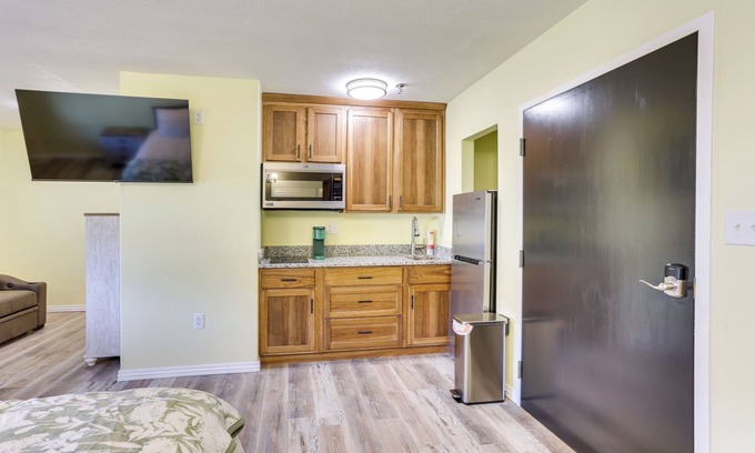 This 1-bedroom rental features a living room, air conditioning, and a ceiling fan. Connect to the free WiFi, or get cozy in front of the TV. Be sure to check out the kitchen, stocked a microwave and cookware. Other amenities include bed sheets and heating.