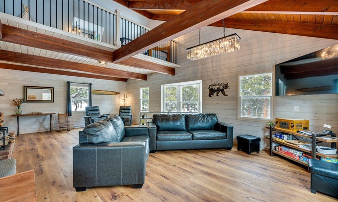 MAIN FEATURES: Furnished deck, gas grill, Smart TVs, shuffleboard, wood-burning fireplace (1 wood bundle provided), dining table, board games/books