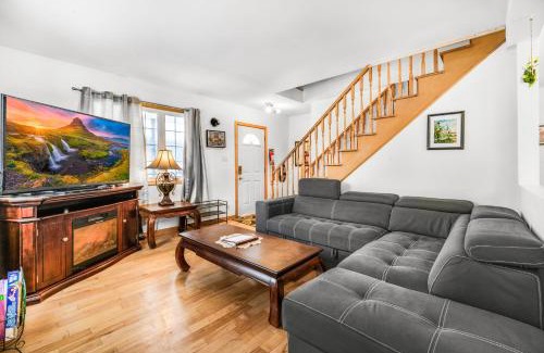 Providing a garden, Quiet place in the heart of Laurentides provides accommodations in Sainte-Lucie-de-Doncaster. This property offers access to a balcony, free private parking, and free Wifi. The chalet features an outdoor swimming pool and private check-in and check-out. Featuring a terrace and mountain views, the spacious chalet includes 4 bedrooms, 2 living rooms, cable flat-screen TV, an equipped kitchen, and 2 bathrooms with a walk-in shower and a bath. Towels and bed linen are available in the chalet. The property has an outdoor dining area. Guests at the chalet will be able to enjoy activities in and around Sainte-Lucie-de-Doncaster, like cycling, hiking, and walking tours. Guests can also warm up near the outdoor fireplace after a day of skiing. Mont-Tremblant National Park is 23 miles from Quiet place in the heart of Laurentides.
