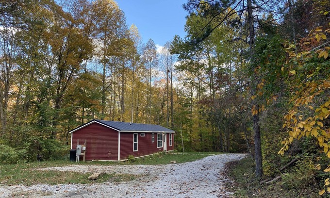 This unit is located near the Wood Creek Boat dock. (Wood Creek Lake is a small lake in Laurel County, KY; there is no high speed boating, skiing, tubing or jet skiing) There are two bedroom with one having its own half bath. There is a great kitchen with plenty of pots and pans so that you can prepare your meals but if you want to travel to London it is only a short drive away. Located on 10 acres there is a short trail to walk down to the lake and there are woods to explore. There is parking for trailers but it is not right next to the cottage, it is about 250 feet away. Come spend a weekend, a week or a month in this lake front paradise. There are two similar cottages on the property for groups of up to 18. Winter guests should be aware that we are unable to remove snow from the walks and driveway so you stay at your own risk. Kentucky often has very mild winters so feel free to book your winter getaway with knowledge that if a snow storm is predicted for the area that you may cancel and receive a full refund if you cancel before your check-in date. If you must leave during your stay because of winter weather we will refund the daily rate for any days left in your stay but know that VRBO does not refund their fees when there is a partial refund. If you brave the snow it is beautiful down here. The property is also secured by cameras, one is located on a tree across the driveway capturing the front of the cottage. The other is on a tree behind the cottage capturing the parking area and rear of cottage.