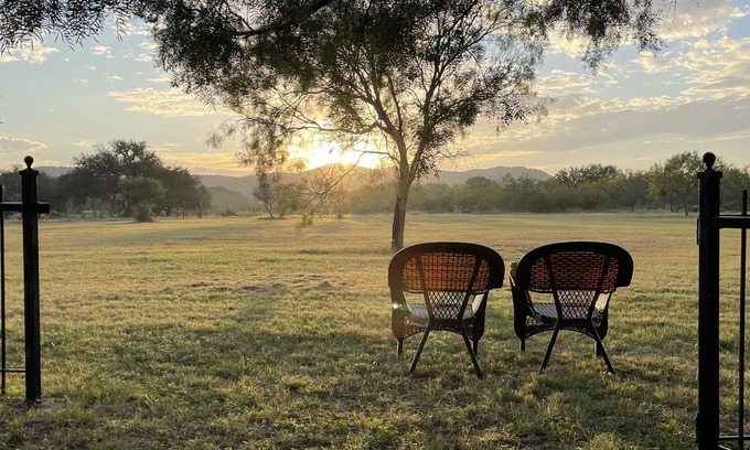 Scenic Mountain sunrises and sunsets, abundant wildlife and shooting stars on 10 peaceful gated acres. The Nueces and Frio Rivers along with popular state parks are a short driving distance. This modern ranch house easily sleeps 10, has a fully loaded island kitchen, comfortable spacious rooms, outdoor lounging areas for star gazing and is perfectly nestled in the Texas hill country.