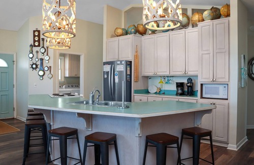 A perfect family getaway!! Escape to WindScape! This home offers an open floor plan with high ceilings for unbelievable views of the Gulf of Mexico. It is a single level home on pilings and all doorways and halls are wheelchair accessible. There is decking all across the gulfside of the house with a portion of it screened for comfortable outdoor meals. If you’re the one who has to work while on vacation, what better place to do that than at a desk facing three windows looking out over the gulf. Outside you will also find a lower level deck, outdoor shower and a private walkover to the beach.
