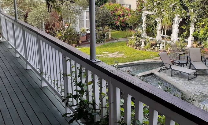 Entire One Bedroom Garage Apartment Garden and Shared Pool in the Heart of Downtown Orlando's Historic Lake Eola Heights Neighborhood. Short walk to Lake Eola, Orange County Courthouse and 7-Eleven. Take the free LYMMO bus through downtown to the Amway Arena, Dr. Phillips Center for the Performing Arts, City Hall and much more. Short drive to theme parks, Winter Park and UCF. Upstairs garage apartment located in a quiet garden area behind our historic home.