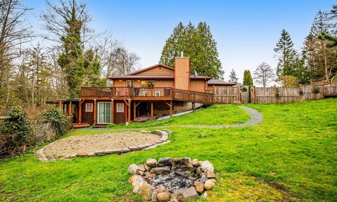 Quiet & secluded getaway with backyard, firepit, wraparound deck & wood stove | House in Oak Harbor